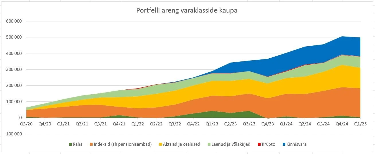 Kvartali kokkuvõte paraku võttis silma märjaks 😊 – nimelt langesin taas alla poole miljoni piiri. Portfelli lisasin uut raha 16k EUR, aga turgude langus viis sealt minema ligi 24k EUR. Seega portfelli väärtus langes peaaegu 8k EUR võrra ja portell lõpetas 499k EUR juures. Aprilli esimestel päevadel numbreid kokku lüües mõtlesin enamisi, et pagan küll – oleks seda teadnud, oleks lihtsalt paar tuhat porfelli juurde lükanud ja pool-miljonäri staatuse säilitanud 😊 Nüüd peale aprilli paari esimest nädalat turgude metafoorilises vereloigus seistes muidugi on selge, et pool-miljonäri staatus on igal juhul mõneks kuuks läinud 😊. Aga 2. kvartal on veel noor – vaatame, kuhu juuni lõpuks jõuame.